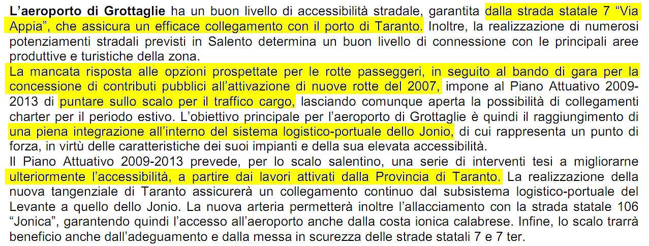 gli aeroporti pugliesi, dal 2008 è bene attenta, affinché a Taranto non ci sia
